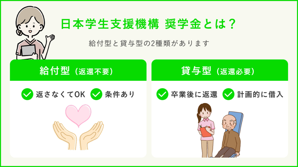 日本学生支援機構の奨学金には、給付型と貸与型があります。